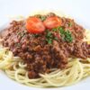 Leckeres Nudelgericht mit Tomatensauce und Rinderhack.