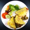 3 gefüllte Maisfladen mit Hähnchenfleischfüllung & Salatbeilage.